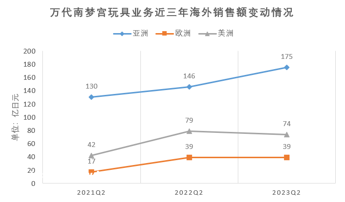 2023年Q2亚洲玩具业务销售额一改前年颓势,增速*增20%。反观欧洲与去年持平,美洲则减少6.3%。