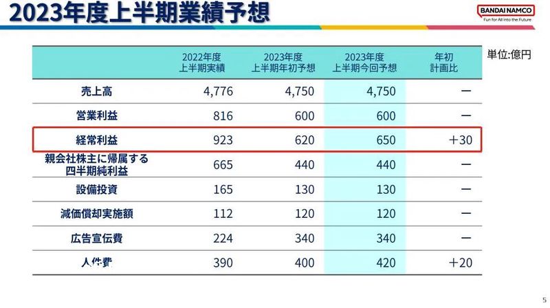 万代南梦宫还将2023年上半期(3月-10月)的经常利润从原来预期的620亿日元上调4.8%至650亿日元。集团CEO川口勝在近期访谈中提及2023年度数字业务的小目标,“将争取实现历史**业绩”。