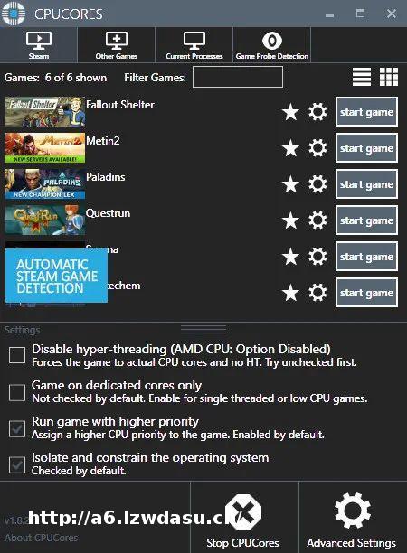 部分“优化“FPS软件:例如上大名鼎鼎的 CORES,就是针对不少游戏,专门将工作模式优化为CPU高优先级实现提升。小狮子实测也是有一定效果的,但是要付钱。