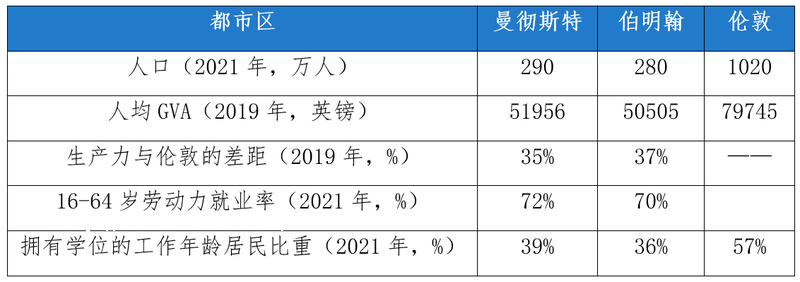 图1 曼彻斯特和伯明翰的生产力低于伦敦和全英平均水平
