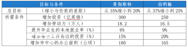 表2 曼彻斯特和伯明翰生产力提升的目标
