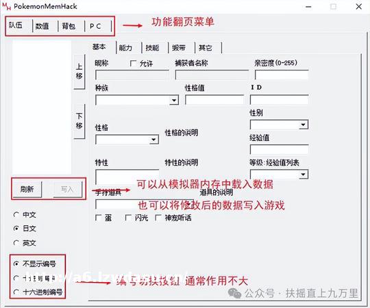 PokemonMemHack是一款口袋妖怪全能修改器,该修改器是针对同名游戏所打造的游戏辅助工具, 内置超多功能修改,支持队伍数量、精灵数值、精灵技能、捕捉方式、宠物球数量等多种功能,不论是对于日文、英文等多种类型语言名字,都可轻松进行修改,支持全部口袋妖怪游戏的修改器,非常好用!