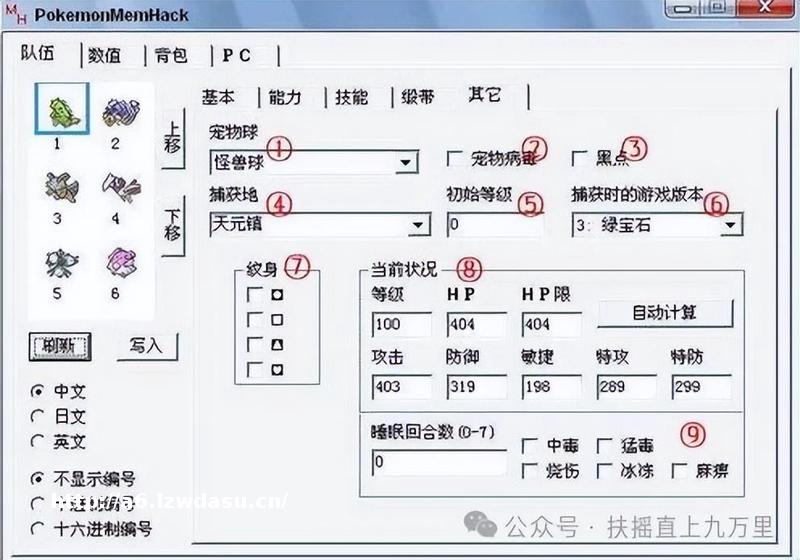 -在开启相对应选择项后,可以借助本程序修改宠物的昵称。-可以借助本程序流程,将队伍里的宠物从一个游戏读取,继而载入另一个游戏里面。将日文版的转移至英语版中:昵称的字符集或是日语的,所以需要应用日文版全角字符集改动。将英文版的转移至日文版中:昵称的字符集还是英文的,所以需要应用英语版半角字符集改动,留意日文版只有表明前5字符。本程序流程未提供方式改动宠物昵称的文字系统,即居然是日文版还是日语的,居然是英文版的还是英文的。