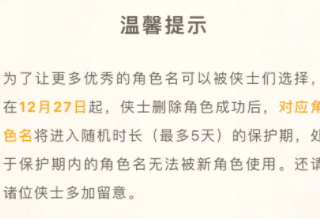 另外也要提醒一句,本来改名之后,旧id有30天保护期,最近剑三把这个保护期改成随机(最长不超过5天)了。