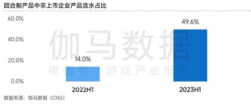 2023年,非上市游戏企业的新品表现证明了在成*的玩法赛道中同样存在新机遇,通过游戏体验的创新,新品也能在众多头部成*产品的压力下突出重围。以回合制赛道为例, 2023年非上市游戏企业在回合制赛道的流水占比大幅上升至49.6%,原因是有两款回合制新品用不同的策略在这一赛道中打造了全新的体验,实现了和头部竞品实现差异化竞争。