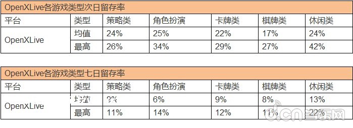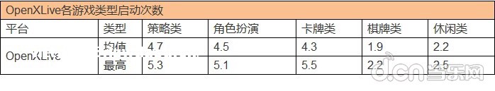 OpenXLive平台用户日均启动次数体现的结果为,用户已经适合中度粘*的产品,然而高品质高粘*的产品经过一段时间的培养用户习惯也将随之改变,重度游戏明年更适合发力!