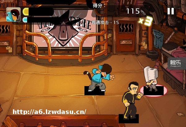 《Combo Crew》的画面带有很强的美漫风格,很容易让人联想到街头涂鸦和篮球,但实际上游戏本身却是个与《双截龙》《热血物语》很接近的街头格斗游戏。在《Combo Crew》里,我们不需要控制主角**走位,好吧其实是必须要击败的敌人身上划一下,主角便会冲过去近身肉搏,玩家进行多点触控操作时还会使主角的招式发生变化,加之长按蓄力,短按防反的配合,玩家很容易的就能在划动与按压的操作中体会到与敌人周旋的紧张感,这是常见的摇杆加虚拟按键操作无法传达的神韵。