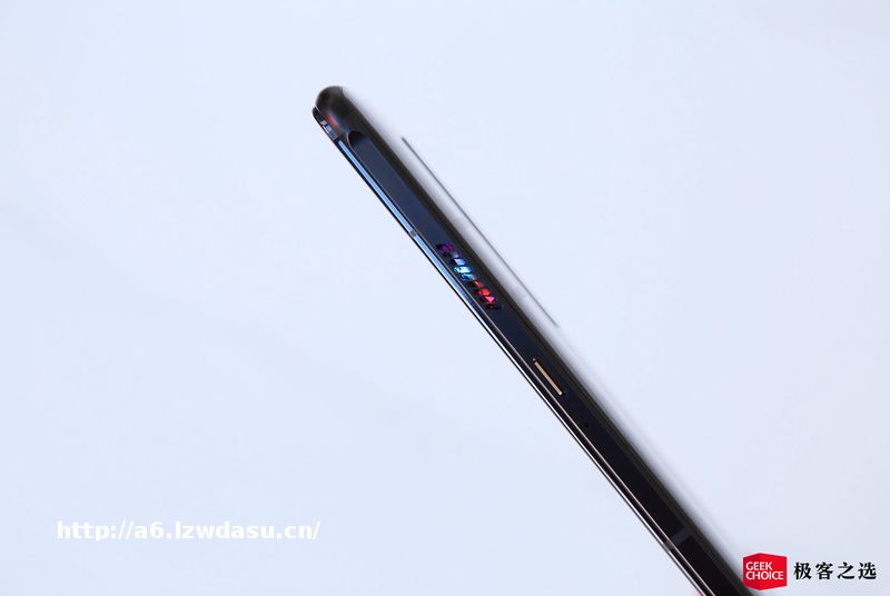 和大多数笔记本产品类似,风扇的主要作用是提升空气**效率,属于主动散热系统的一部分,除此之外,还得匹配合理的风道。红魔 7 优化的地方,是在原有左右风道结构的基础上又新增了拥有 45°倾斜角设计的背部进风孔(位于氘字下方),这对于提升换气效率也有一定帮助。