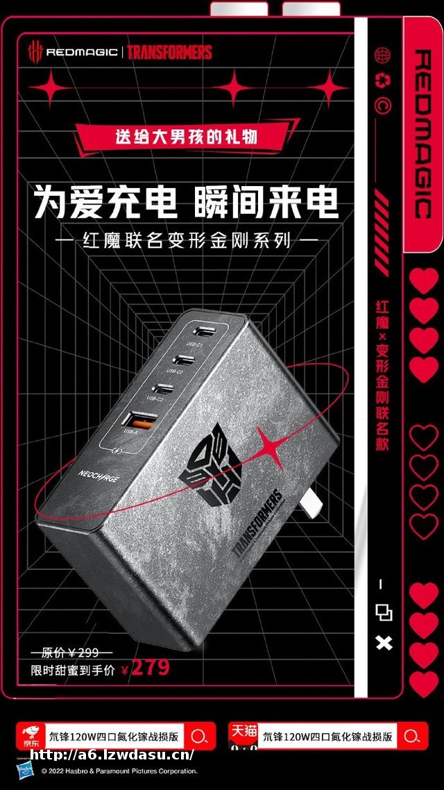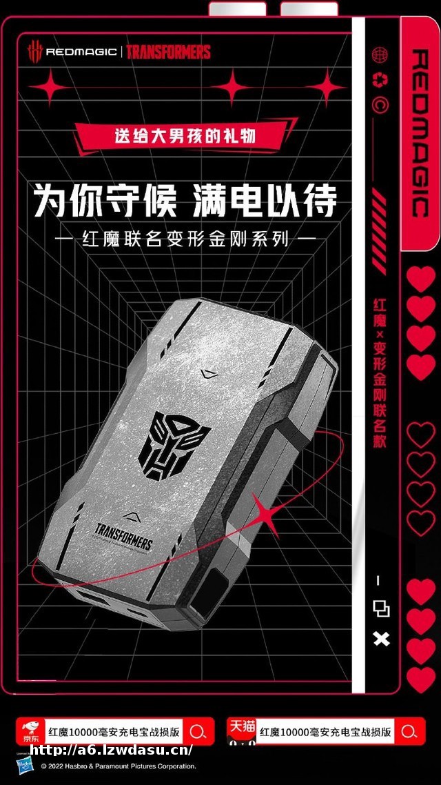 520浪漫献礼,努比亚红魔变形金刚联名系列氮化镓充电器、移动电源、游戏耳机等生态产品一站式礼物选购,为你身边那个大男孩传达出无限爱意。潮流经典定制外观,**便携,适用场景强大,满足出行、聚会派对、游戏竞技全方位需求。**定制潮酷外观与电竞灯效,让这个夏天躁动开场,让游戏魅力再次升级,值得一买。