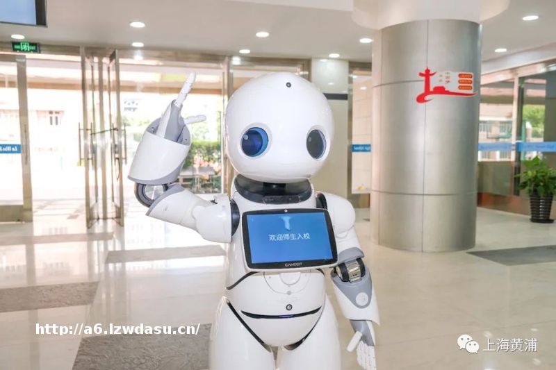 卢湾高级中学,酷似“大白”的机器人在底楼大厅欢迎师生的到来