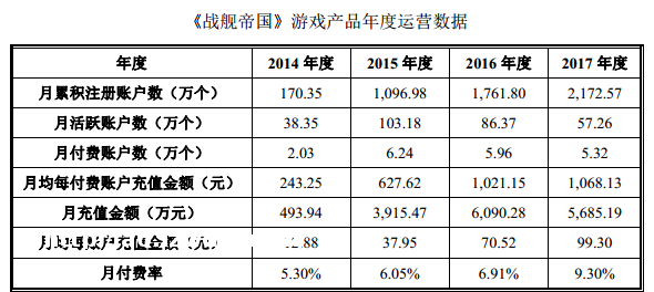 华清飞扬旗下一款**同质化的手游《战舰帝国》,2017年的月均ARPU值(月均每账户充值金额)达到100元,接近全行业**手游《王者荣耀》,平均每个付费用户每月充值超过1000元。