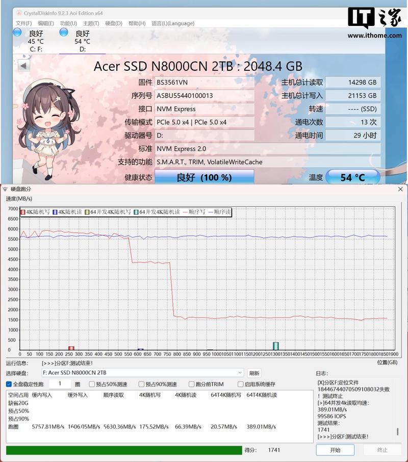 在反映底层并发吞吐能力的随机能测试中,宏碁 N8000 展现出了 HMB 机制与 SLC Cache 智能动态调度的实际效能。