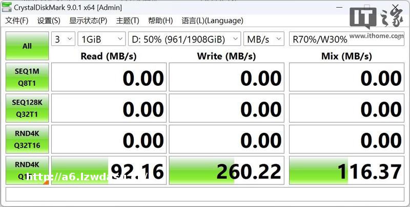 测试结果显示,宏碁 N8000 在该混合工况下的带宽成绩达到了 116 MB/s。