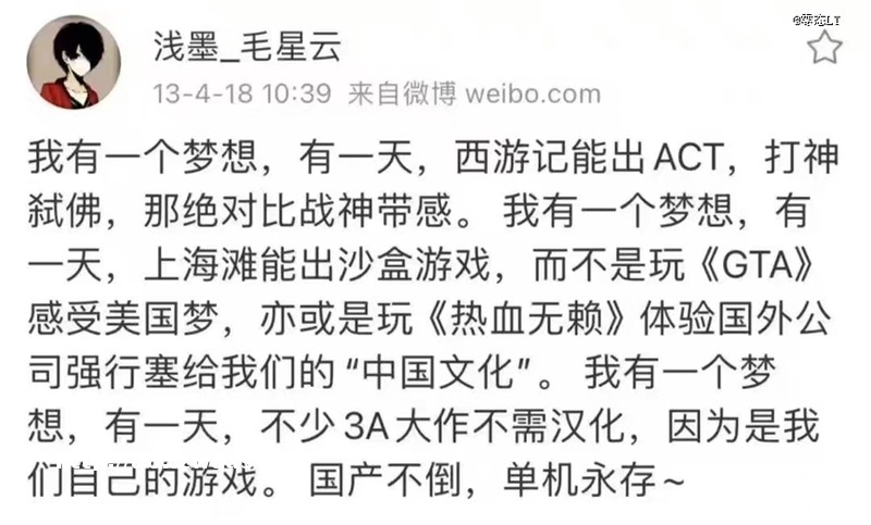 而一位在2021年因意外而去世的前腾讯员工,业界**的资深游戏开发技术专家毛星云,曾在2013年乌克兰留学期间写下一篇文章《致终将由我们去复兴的国产游戏》。毛星云在文章中反复强调他的梦想——希望国产游戏能像中国的其他产业一样,以一个领跑者的姿态,面对全世界…