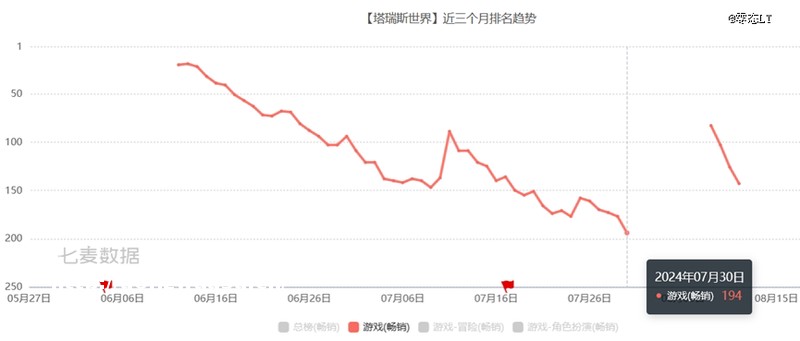 此次《塔瑞斯世界》虽然由腾讯发行,并历经多次打磨与调优,上线后也一度冲至**榜**的19名,但随着网易宣布《魔兽世界》国服正式定档5月30日后,《塔瑞斯世界》手游的**排名便一路下滑到了《魔兽世界》上线前一天的6月4日,《塔瑞斯世界》手游便在**榜上消失。至于《塔瑞斯世界》的端游,由于它才是《魔兽世界》的真正竞品,因此表现只会更惨。