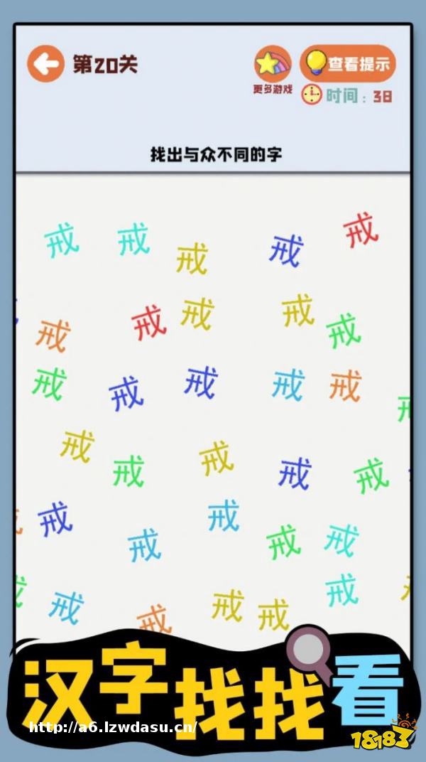 游戏简介: 这是一场对眼力和汉字知识的双重考验!游戏将“找茬”玩法与汉字学习巧妙结合,你需要在一堆杂乱无章的汉字中,找出与题目描述相匹配的目标。这种创新的设计不仅能带来发现的乐趣,还能让你在不知不觉中加深对汉字结构的理解,既好玩又涨知识。