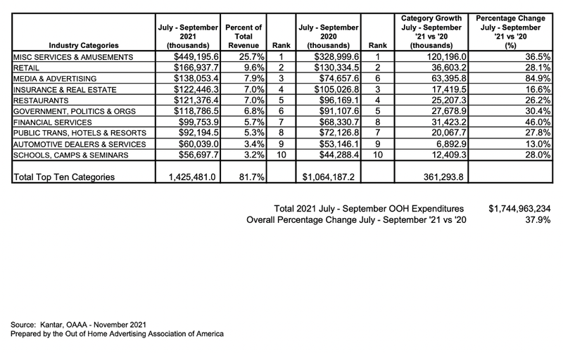 华盛顿特区.达到17.5亿美元。与2020年第三季度相比,该细分市场增长了56%。年初至今,比2020年增长10%。