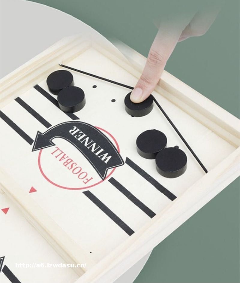 这是一款让人心跳加快的木质玩具。棋盘打开后,两人对垒,各自将“地盘”内的5颗棋子通过棋盘内的弹*绳弹到对方的“地盘”。虽然听起来简单,但实际上弹到对方“地盘”时需要通过中间一个小孔,这就要精准穿洞,增加了游戏的难度。而在紧张的对垒下,收获的不仅是胜利,还有开怀大笑。