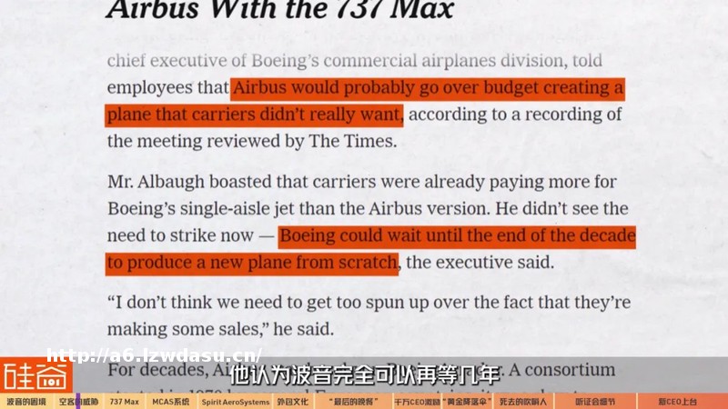当时波音商用飞机部门的CEO James F. Albaugh告诉员工,空客的新飞机可能会超预算,成为航空公司们并不想要的飞机,再从头**新机型。