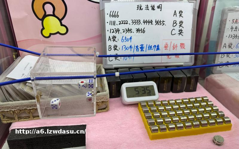 和普通的抓娃娃机不同,这台机器内设两根皮筋,皮筋中间拴着悬空的塑料盒,盒内放着四枚**,抓手移动、下探,每钩到一下盒子或皮筋,**便在里边弹跳,停下后得出随机的点数。机器附近也并无对玩家年龄的限制。当日,该男孩每次投币便有一次用抓手掷**的机会,四个**投掷出“6666”可获得**奖650个游戏币,摇出“1111”“2222”……“5555”可获得130个游戏币或纸巾盒的等奖品,摇出“1234”“2345”和“3456”可获得10个游戏币,男孩摇了几次一无所获,仍继续投币。
