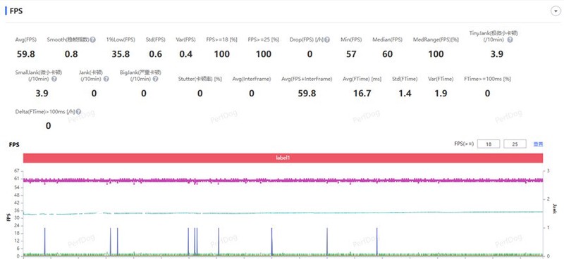 第二款手游《崩坏:星穹铁道》游戏内开启非常高画质+60帧模式,在高负载场景“黄金的时刻”中跑图30分钟后,平均帧率稳定在59.8帧。