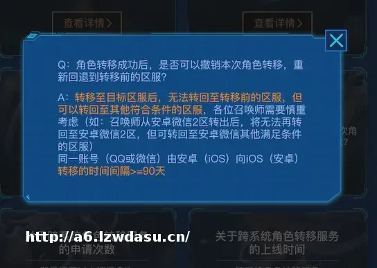 大家还需要注意的是,转移至目标区服后,无法转回至转移前的区服,但可以转回至其他符合条件的区服。