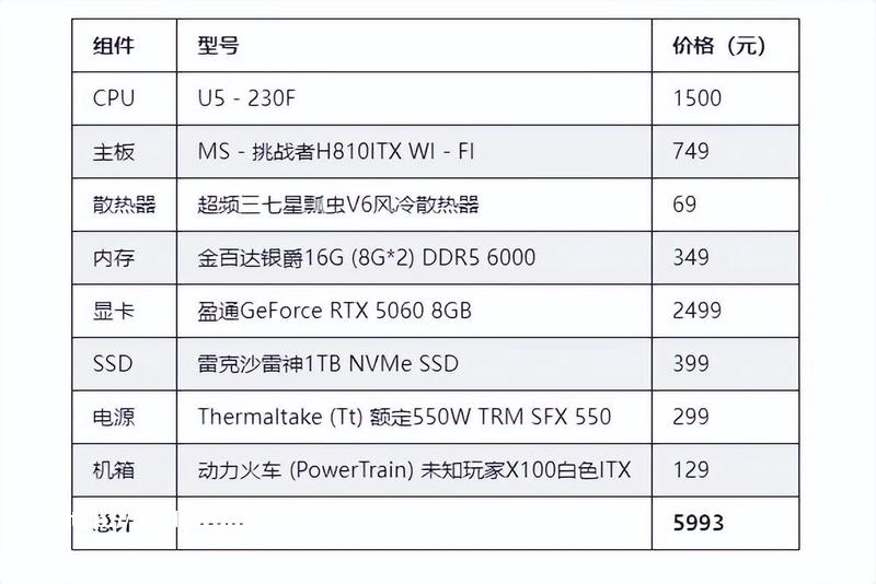 要是预算够,想冲2K,加钱上RTX5060Ti也行,但记得选短卡(比如影驰RTX5060Ti mini),别买太长的塞不进机箱!