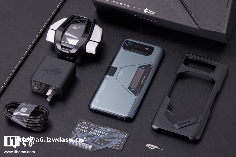 65W 快充适配器,镂空保护壳,取卡针,还标配了 ROG 酷冷风扇 6,可以说该给的都给了。