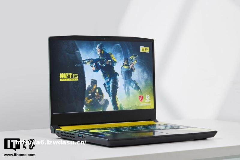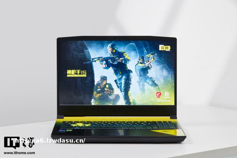 就能察觉到它的不同,整机均采用黑黄撞色设计,与游戏内的防化服设计一致,颇有代入感。它是一台 15.6 英寸的常规尺寸游戏本,三围为长 359mm;宽 259mm;高 26.9mm, 重量约为 2.3KG。