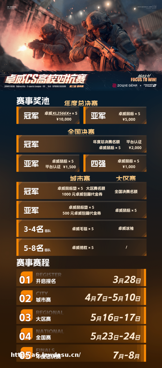 报名时间将持续至各城市赛点开赛前一天,每支队伍可报5名主力队员及至多一名替补队员,同时支持“3+2”组队模式(即3本校+2外校),不论你是想以此契机追寻电竞梦想,还是想切身感受专业电竞赛事的火热氛围,亦或是想与“开黑搭子”并肩作战留下珍贵回忆,我们都欢迎你积*报名参与!