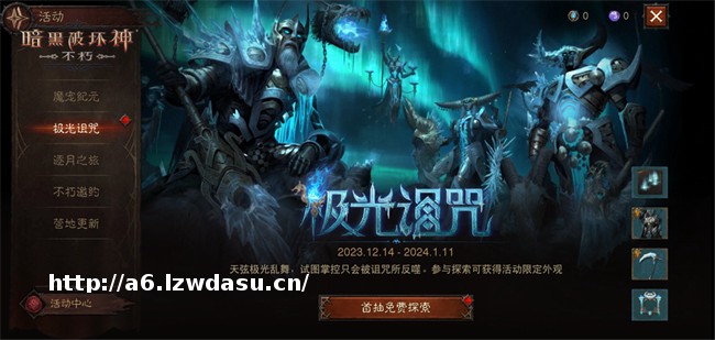 *寒之地夜空,*光的绚丽不仅遮掩住了闪耀的群星,其中所蕴藏的力量更是难以想象的强大!《暗黑破坏神:不朽》全新探索活动“*光诅咒”限时开启,通过神秘仪式,即可让*光的力量为自己所用。当铺天盖地的寒气散去之时,冰封的战神将正式登场!