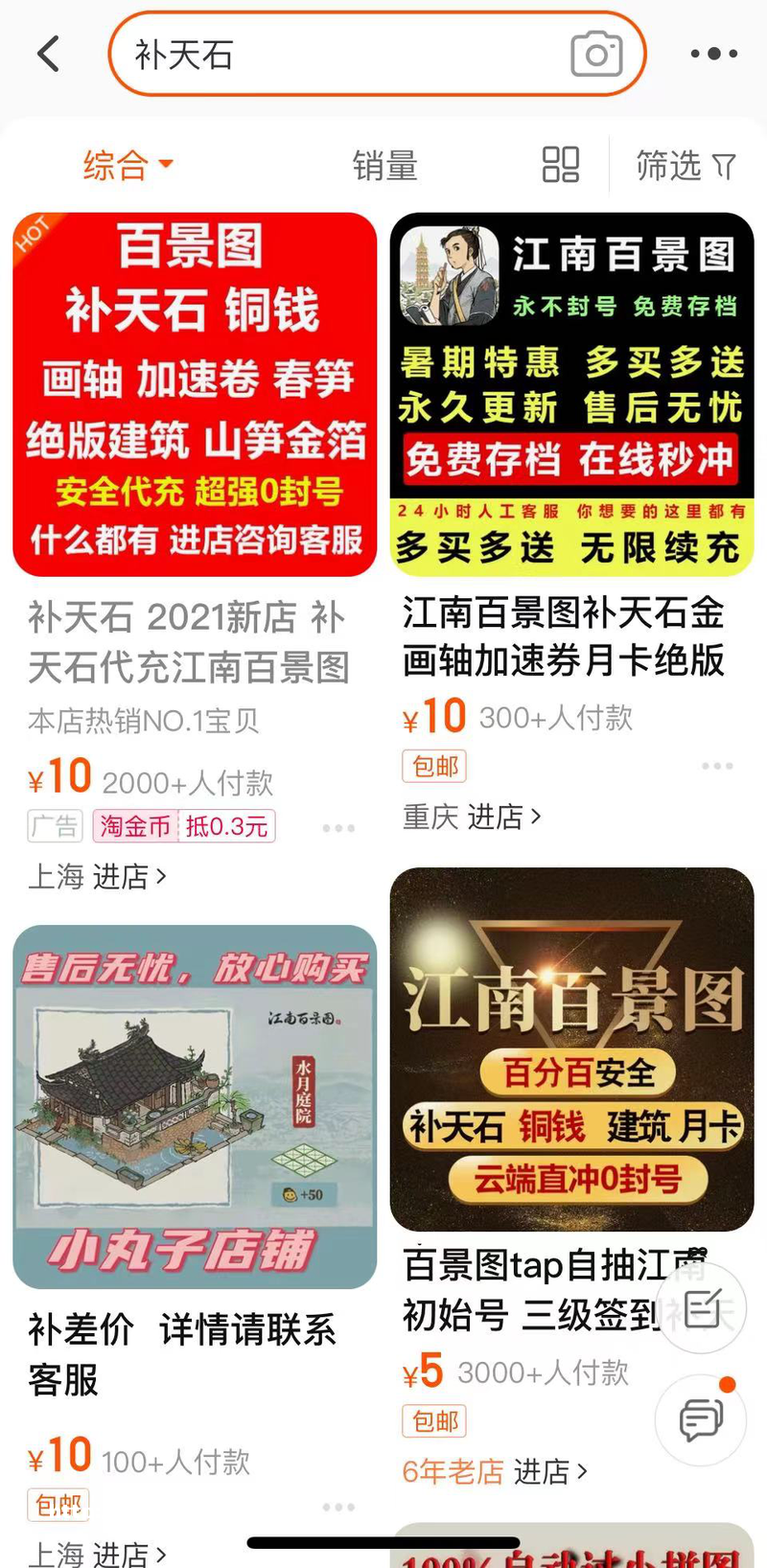 此外,还有玩家向中国网科技反映该游戏存在较明显的充值漏洞,《江南百景图》游戏中的虚拟道具“补天石”、“加速券”、“铜钱”等都可以通过代充获得,而这些道具的价格在游戏中并不便宜,但是游戏方显然对此问题的力度不够。