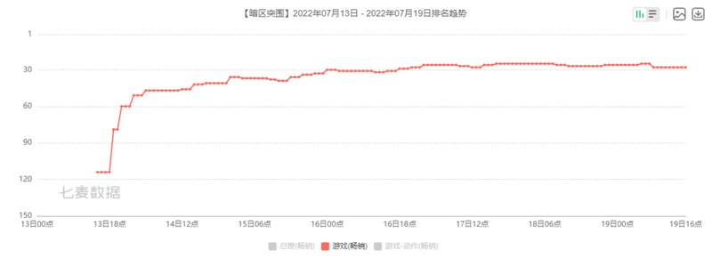 《黑潮之上》在上线初期也曾有过比较亮眼的表现,**曾到达中国iOS**榜14名,但这种成绩并未保持太久,短短一个月时间游戏就跌出了****00,随后的2021年更是一路滑行至近千名。