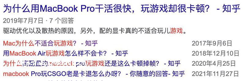 这可不是小鑫鑫脸黑,网上随便一搜,关于 Mac 玩游戏卡顿、掉帧、发热等相关问题一大堆。