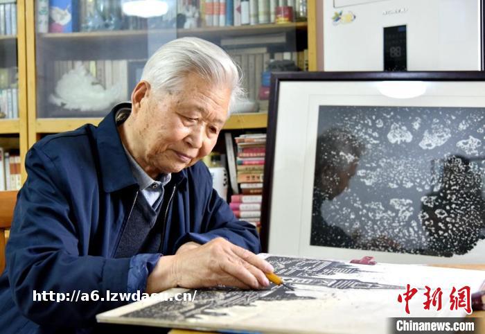 李训哲老人尽管已是耄耋之年,但是他依然坚持版画创作。