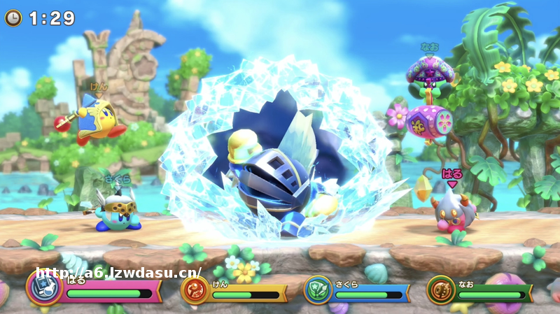 同样是 Switch 平台与任天堂**方游戏,《**卡比猎人队》最多支持四个玩家同时游戏,四个玩家分别扮演不同职业分工的卡比相互配合击败 BOSS,每场战斗在 2-5 分钟左右。