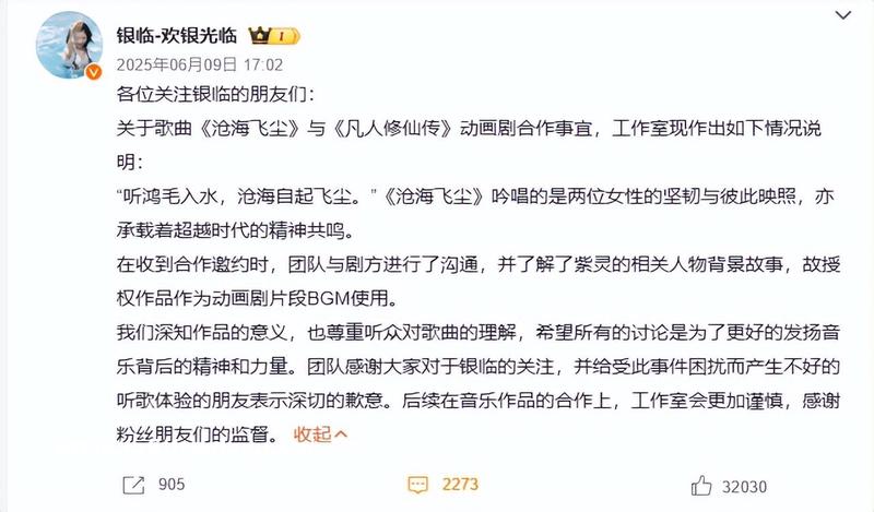银临被女权大V围攻,疑似因《沧海飞尘》被**给《凡人修仙传》而被指责“背叛”女*。
