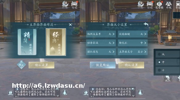 界面UI上,《剑网3**》化繁为简,把PC端的繁多功能玩法整合到了右上角的“菜单”里,玩家可以按需查找,保证了主界面一目了然。同时提供了“精简模式”、“经典模式”与“自定义”的界面设置切换,喜欢哪种界面可以自由的切换和自定义,将选择权交由玩家。