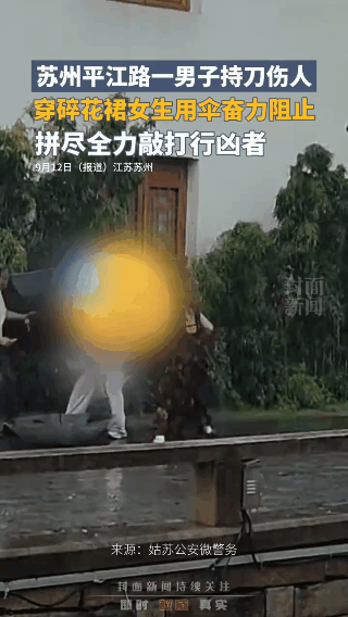 今年11月15日,江苏苏州市平江路发生一起持**人**,女孩刘杨奋力用雨伞打掉**者手上的刀,成功制止其继续**。