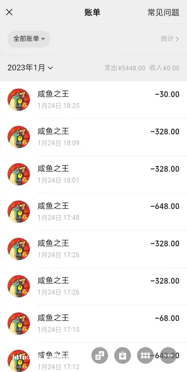 他的账号在12月12日、12月21日、1月24日和12月21日发生多笔游戏消费,包括“咸鱼之王”“疯狂骑士团”两款游戏,其中在“咸鱼之王”消费的金额**,累计有5442元,“前两次是小额度的,到12月25日、11月20日一下充了很多”。