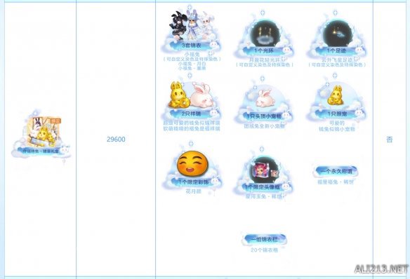 29600仙玉的守福待兔·臻至礼盒,就可以将3种锦衣染色,两种祥瑞,以及光环、足迹、头顶小宠物和钱兔似锦跟宠全部收入囊中,美滋滋!