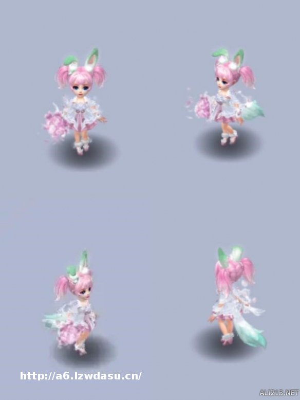 我们只需将小福兔头饰染成绿色的耳朵和粉色的头发,再把烟岚雪衣服染成绿色的尾巴和粉色的衣服,这样我们就可以化作一位绿耳朵、绿尾巴、粉色头发,穿着粉色小裙裙的可爱美少女啦!