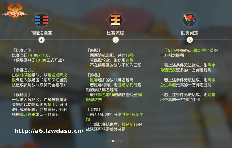 等待海民勇士的**关便是【同服海选赛】,在比赛过程中,五分钟内率先击败敌方全员的战队即可获得胜利,最终排名前16的战队将晋级至【同服淘汰赛】。