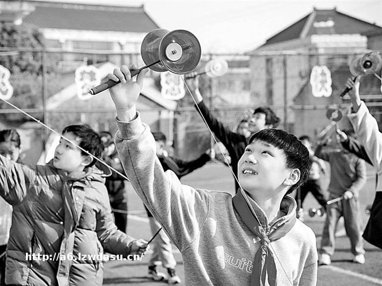 江苏省南通市通州区金余小学**利用课间在操场上练习抖空竹。