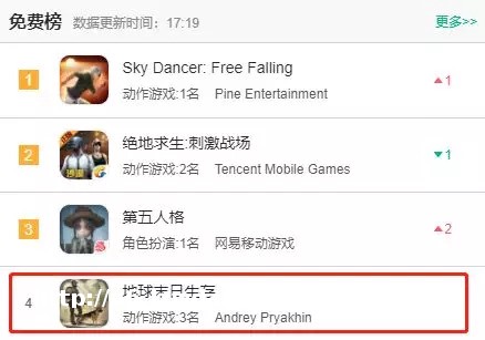 几天前,App Store首页推荐了《地球末日:生存》(以下简称《地球末日》),成功引起了手游那点事的注意。这是一款俄罗斯游戏团队开发的生存类沙盒游戏,App Store的首页推荐给《地球末日》带来巨大流量,《地球末日》排名瞬间飙升至游戏免费榜第二,总榜第四。