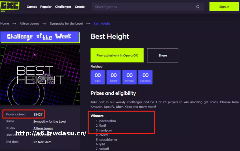 GXC经常举办社区比赛,爱丽森也是受益者之一。爱丽森开发的小游戏《Won't You Be My Laser?》,在GXC社区展示比赛中,从500多款游戏中脱颖而出,入选了最**的45 款小游戏榜单,获得了GXC颁发的1,000 美金的奖励。
