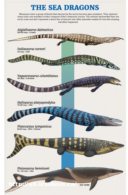 对了,大家应该都知道沧龙并不是恐龙吧?它们和恐龙的亲缘关系很远,甚至不是恐龙、翼龙、伪鳄类所属的主龙类,而是和蜥蜴、蛇同属于鳞龙类。