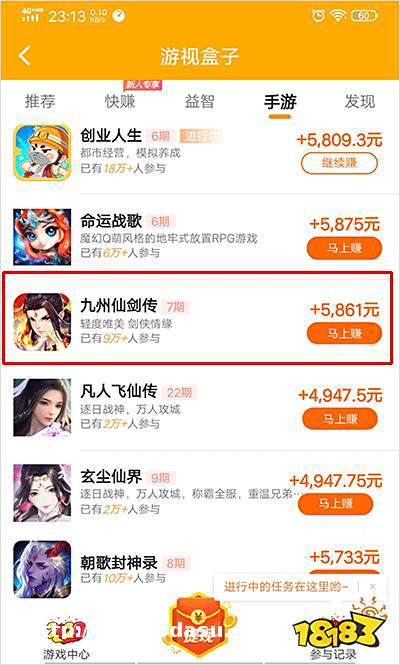玩游戏*钱已经告诉你怎么做了,喜欢玩游戏的话,在里面玩游戏*钱了,游戏还是非常多的,比如九州仙剑传,热血之刃,凡人飞仙传,诛仙封神传等,还有一些休闲类的益智小游戏,在这里我也不一一举出了,我举个例子吧,看看这款《九州仙剑传》手游,奖励还是非常丰厚,像这样的游戏有很多期,每期总奖励达5000多块钱,要是你同样游戏多玩几期,你能在这里*不少钱,在这里玩游戏,不必担心自己没游戏玩,每天都有上新。