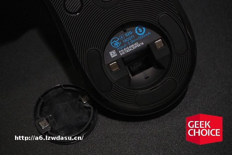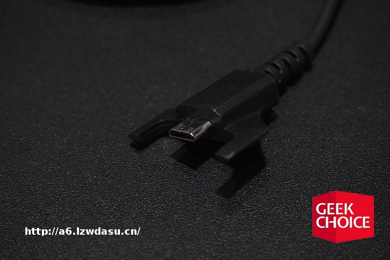 作为一款无线鼠标,罗技 G PRO 也可以在有线连接下工作,包装内会随机附赠一条 Micro USB 接口的线材并且做了加固处理,两边的固定槽会防止因为鼠标移动而造成的线材脱落。其实有很多家外设厂商都有类似设计,但罗技 G PRO 使用了标准的 Micro USB 接口还是值得肯定的,在特殊情况下,用户也能够方便的找到线材充电或者是连接。