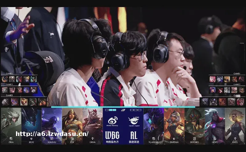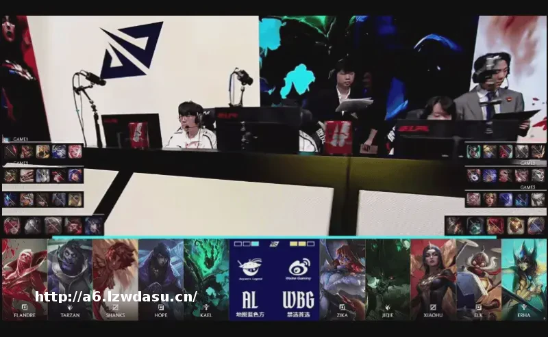 ***比赛,AL红方,禁用:妮蔻、蔚、卡莎泰坦,选用:Flandre塞恩皇子、Shanks沙皇、Hope寒冰、Kael歌姬;WBG红方,禁用:,选用:Zika兰*潘森、Xioahu永恩